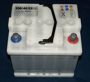 As baterias de arranque (geralmente de chumbo-ácido) fornecem um diferencial de 12 Volt de potência nominal, ligando seis células galvânicas